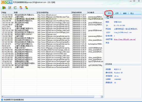 訪客的來源、上線時(shí)間、訪問軌跡、狀態(tài)等詳細(xì)數(shù)據(jù)一目了然,化被動(dòng)咨詢?yōu)橹鲃?dòng)邀請(qǐng),把握每一個(gè)潛在客戶。 在客服端主窗口,選擇某個(gè)訪客(該訪客必須為在線狀態(tài)),然后點(diǎn)擊“呼叫”按鈕: