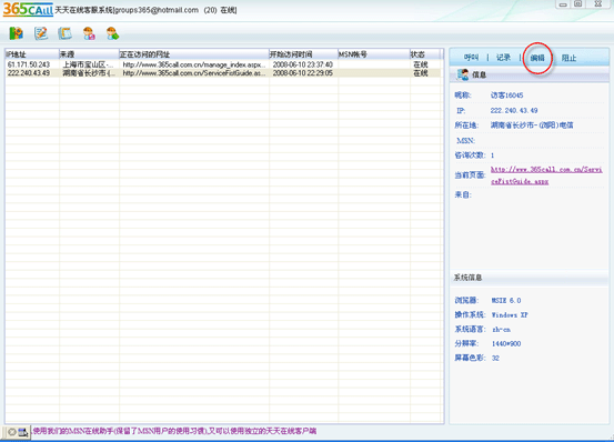 圖:訪客信息編輯窗口 _ 客服監(jiān)控窗口