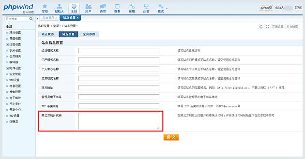 首先獲取在線客服安裝代碼,然后登陸phpwind 后臺,進入全局》站點信息》,復(fù)制在線客服 代碼并粘貼到“網(wǎng)站第三方統(tǒng)計代碼”文本框中,點擊提交完成。